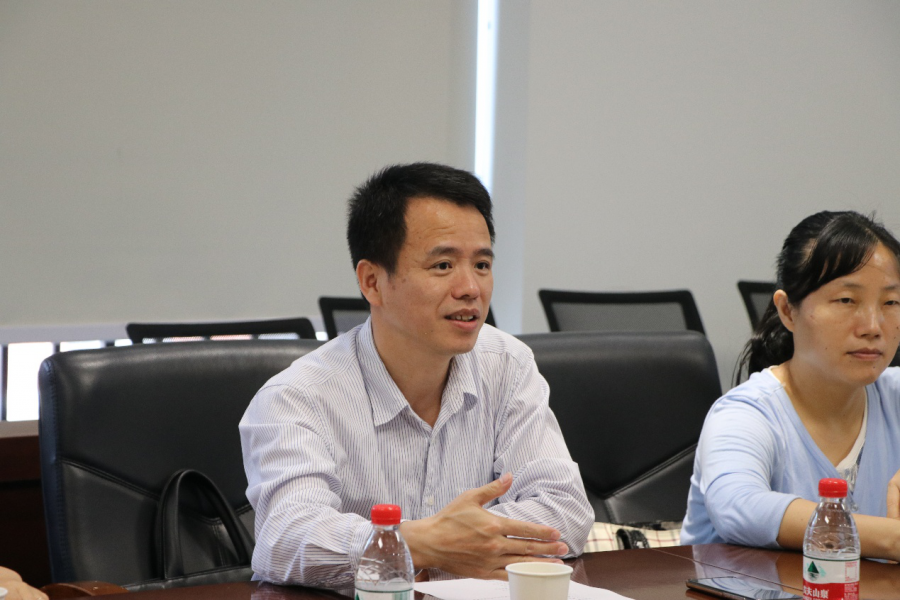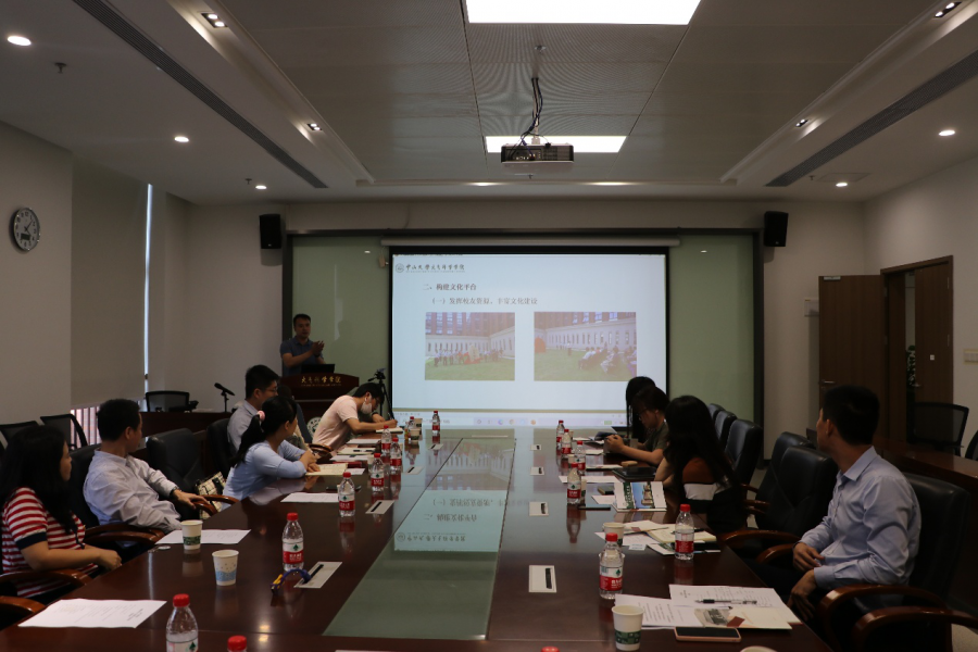 在两个学院分别介绍了基本情况之后,余伯俊副书记简要介绍了大气科学学院文化建设和五周年院庆筹备工作。在文化建设上,学院注重于统一标识、构建文化平台、丰富文化活动三个方面。统一标识即统一学院标志和配色、统一文化标识、统一文化理念。构建文化平台,要求发挥校友资源,丰富文化建设;梳理历史脉络,传承文化精神;挖掘学科内涵,构筑文化特色。同时学院举办了学院联谊、大气下午茶、大气咖啡角等活动以丰富学院文化生活,增强师生之间的交流。关于学院五周年院庆工作,余书记介绍,“大气科学学院成立五周年系列活动”包括大气磅礴气象万千大师名师论坛、晚餐会、迎新晚会等多项内容。其中,大气磅礴气象万千大师名师论坛邀请国内气象学名家们做大气相关方向研究的主题报告;晚餐会在海琴二号一楼草坪举行,学院准备了样式丰富的菜品,邀请学院教职工和离退休教师代表参加,大家在会上切分蛋糕、自由用餐,现场氛围轻松愉悦;院庆当晚“大气磅礴,气象万千”迎新晚会在海琴二号一楼报告厅隆重举行,大气学院师生献上精彩纷呈的歌舞表演,将院庆的热烈气氛推向高潮。