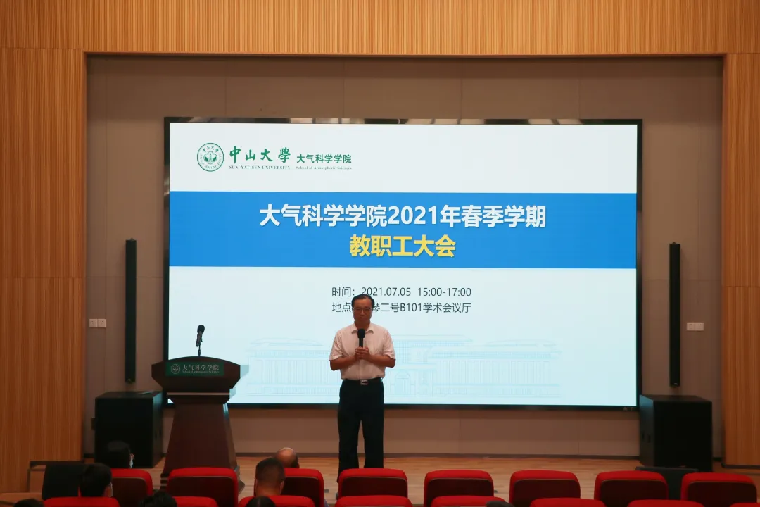 至此,全院教职工大会顺利结束。本次大会对2021年春季学期学院各项工作进行了回顾和总结,对重点工作进行了再部署再落实,将进一步提升全院教职工坚持立德树人根本任务的自觉性,为办好一流的大气科学专业、推动我院各项事业高质量发展砥砺奋进!