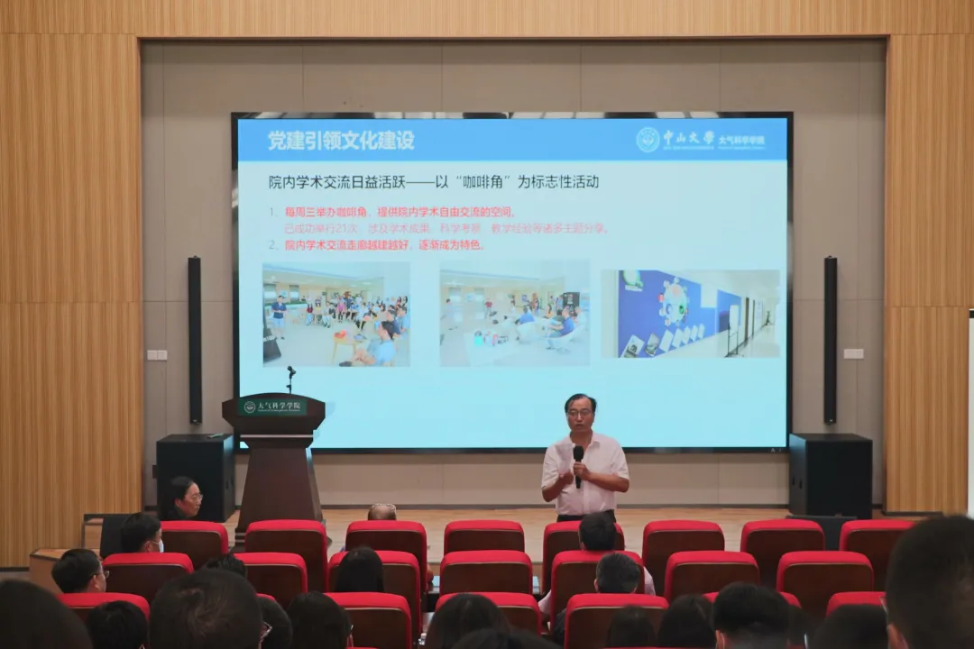 全国气象教学名师、党委纪检委员、气象系主任简茂球教授作师德师风专题报告。简茂球教授对《新时代高校教师职业行为十项准则》、《中山大学教师本科教学工作规程(2021)》两个文件进行了阐释,他提醒老师坚守师德底线,避免教学差错和教学事故,并鼓励青年老师把“教学”这一篇发表不了且需要不断修改的论文写好,努力成为一个有理想信念、有道德情操、有扎实学识、有仁爱之心的“四有”好老师。