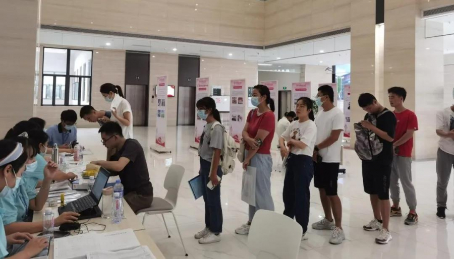 早上七点整,我院迎新志愿者和研究生会的成员穿上了整齐的服装早早的来到了指定地点,在海琴2号楼布置了温馨舒适的报到现场。随后,志愿者们按事先的规划迅速到达自己的工作岗位。在疫情的特殊背景下,新生报到流程由防疫工作开头,“扫码、查卡、测体温、看核酸”,我院新生报到工作采取“一条龙”服务,旨在保证新生能够按要求顺利完成一系列报到程序,尽快适应校园生活。志愿者们热情迎接每一位新生,和新生同学耐心沟通,注重每一个工作细节,除了完成报到手续、讲解住宿饮食等入学后日常生活的引导,研究生会的成员还在在校园里驻扎指引,提醒同学们及时完成到校后核酸检测和体检,重视自己和其他同学的健康安全。志愿工作者们对每一个环节都精益求精,在效率和质量两不误的情况下顺利完成任务。学院领导多次到现场关心学生报到情况,勉励工作人员在认真完成工作任务的同时要把工作做出温度、体现学院的人文情怀。