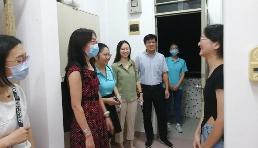 9月1日晚上,大气科学学院党委书记郑慧、副院长杭建教授、院长助理何文平教授、高中明副教授、莫梓伟副教授、张雪琳副教授、杜亚星副教授、兼职辅导员以及学院研究生会的师兄师姐等人走进学院2021级研究生新生宿舍,给同学们带去学院的关心和问候。其中,郑慧书记等一行走访研究生女生宿舍,了解新生的生活情况。每到一个宿舍,老师们都亲切地询问新生的生源地、家乡等,并询问了每个新生的导师以及专业,鼓励大家多与老师们交流。此外,郑慧书记还格外叮嘱疫情防控工作不容忽视,学生要不折不扣执行防疫工作要求,同时注意消防安全、提高防诈骗意识,遇到困难第一时间与导师、辅导员寻求帮助,早日适应新的生活环境。