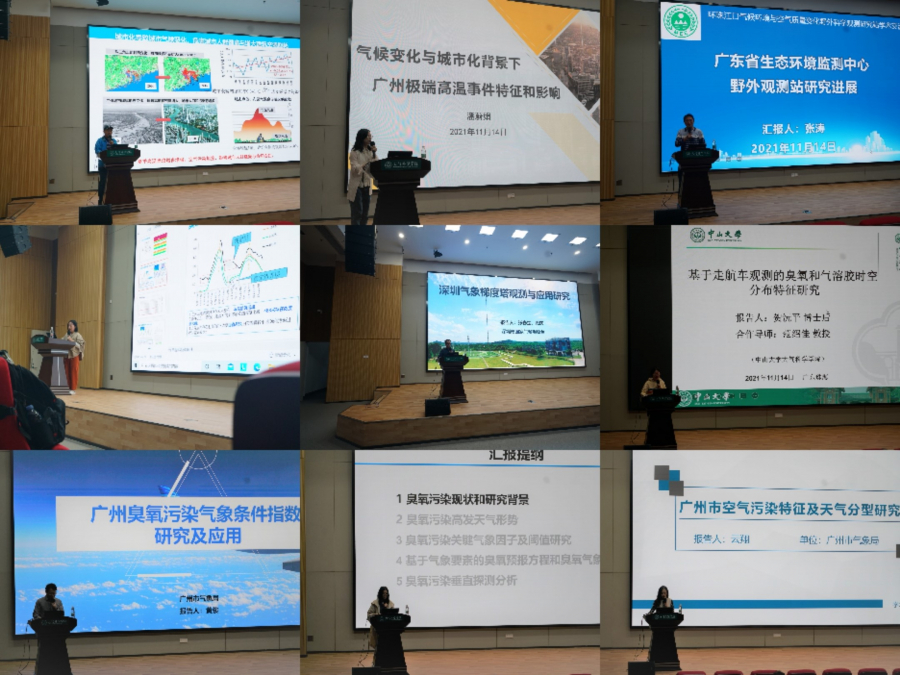 杭建教授、广州市气象局潘蔚娟教授级高工、广东省生态环境监测中心张涛高工、广州市气象局高晓荣高工、深圳市气象局张春生高工、中山大学大气科学学院贺沅平博士后、广州市气象局黄俊高工、佛山市气象局陈辰工程师、广州市气象局云翔工程师分别进行学术报告。