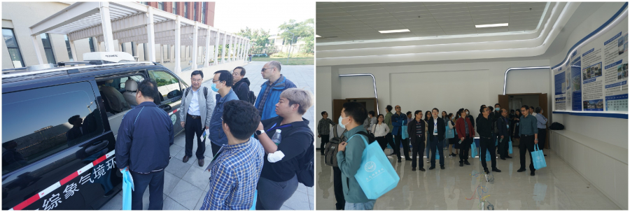 范绍佳站长陪同领导嘉宾专家考察珠海校区基地观测场、赵军副站长介绍大气化学仪器