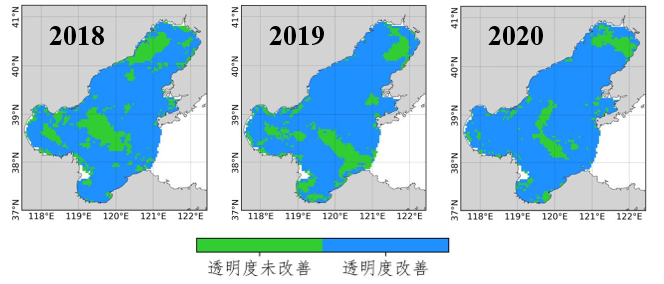 渤海综合治理期间(2018-2020年)透明度改善的海域分布