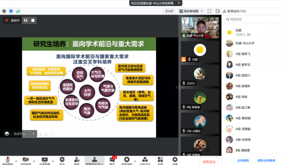 2022年7月7日至12日,中山大学大气科学学院暑期学校活动顺利举办。鉴于疫情防控的特殊形势,本次暑期学校活动采用线上授课的形式进行。活动吸引了来自全国多所高校的160多名学员及众多校内外旁听生参与。学院多个团队的60余名授课教师为此次暑期学校活动进行授课。