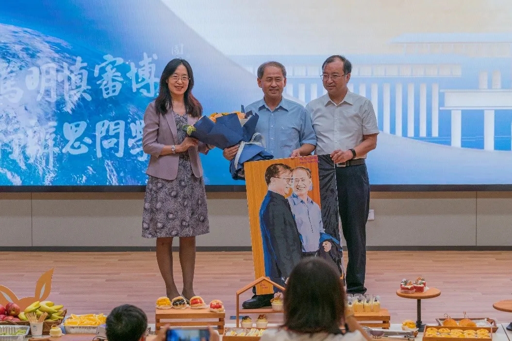 今年1月,杨崧教授负责的泛南海地区天气气候教师团队成功入选全国第二批高校黄大年式教师团队。为感谢杨崧教授在学院发展中做出的突出贡献,董文杰院长将手绘合影赠予杨崧教授留作纪念,郑慧书记为杨崧教授献上鲜花。