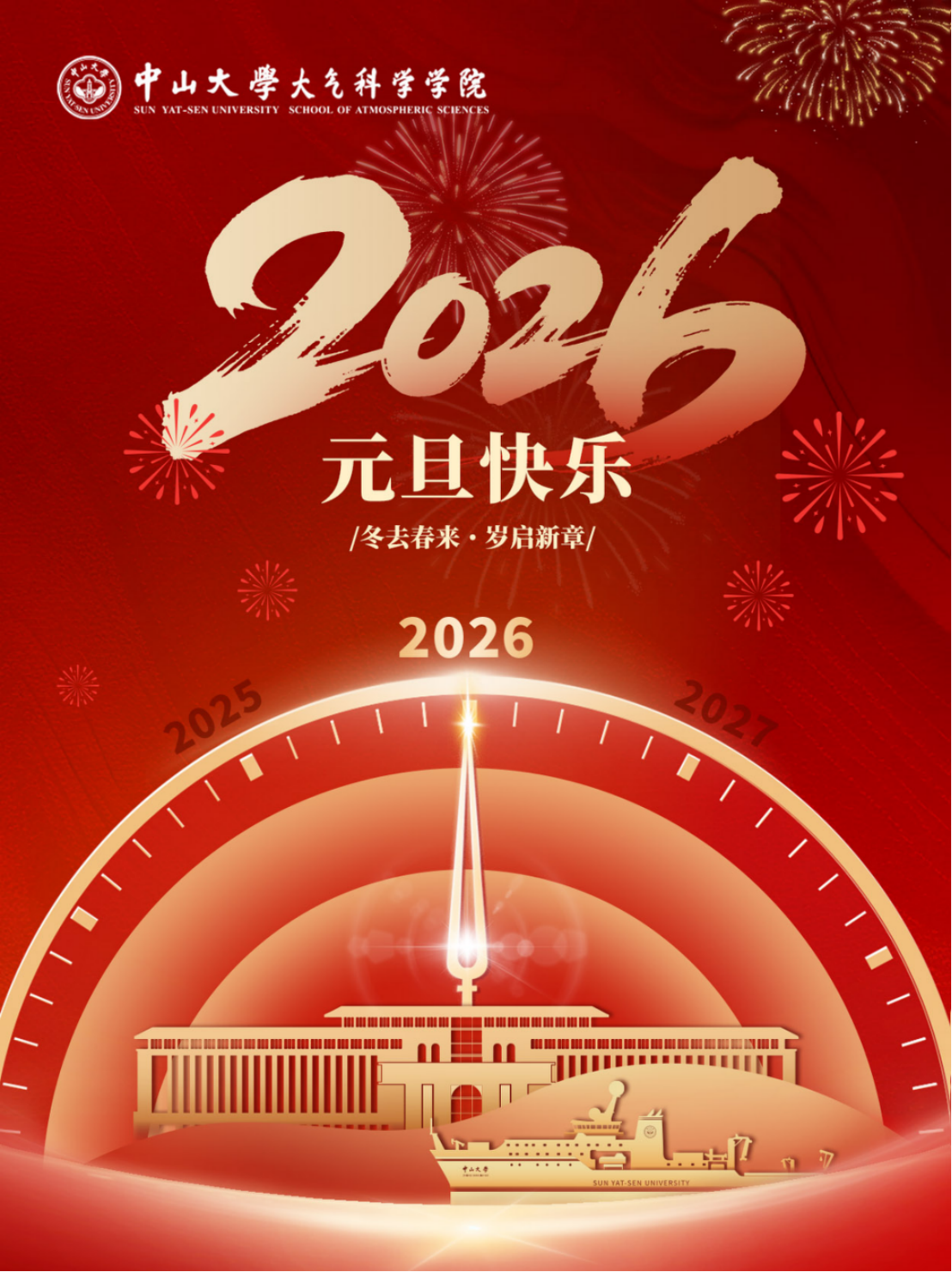 岁序更替,华章日新。值此辞旧迎新之际,中山大学大气科学学院谨向全院师生、退休教职工、“中山大学”号海洋综合科考实习船船员、海内外校友以及所有关心支持学院发展的朋友们,致以崇高的敬意、诚挚的问候和美好的新年祝福!