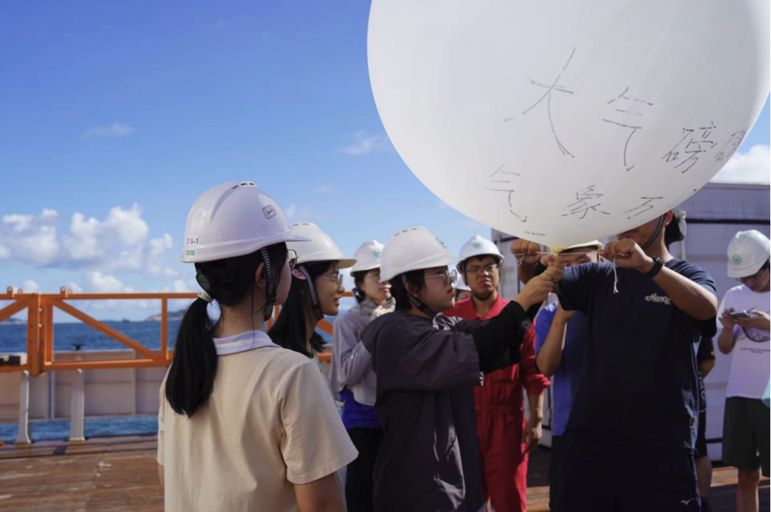 参与科考船航次任务,放探空气球收集温压湿风的数据