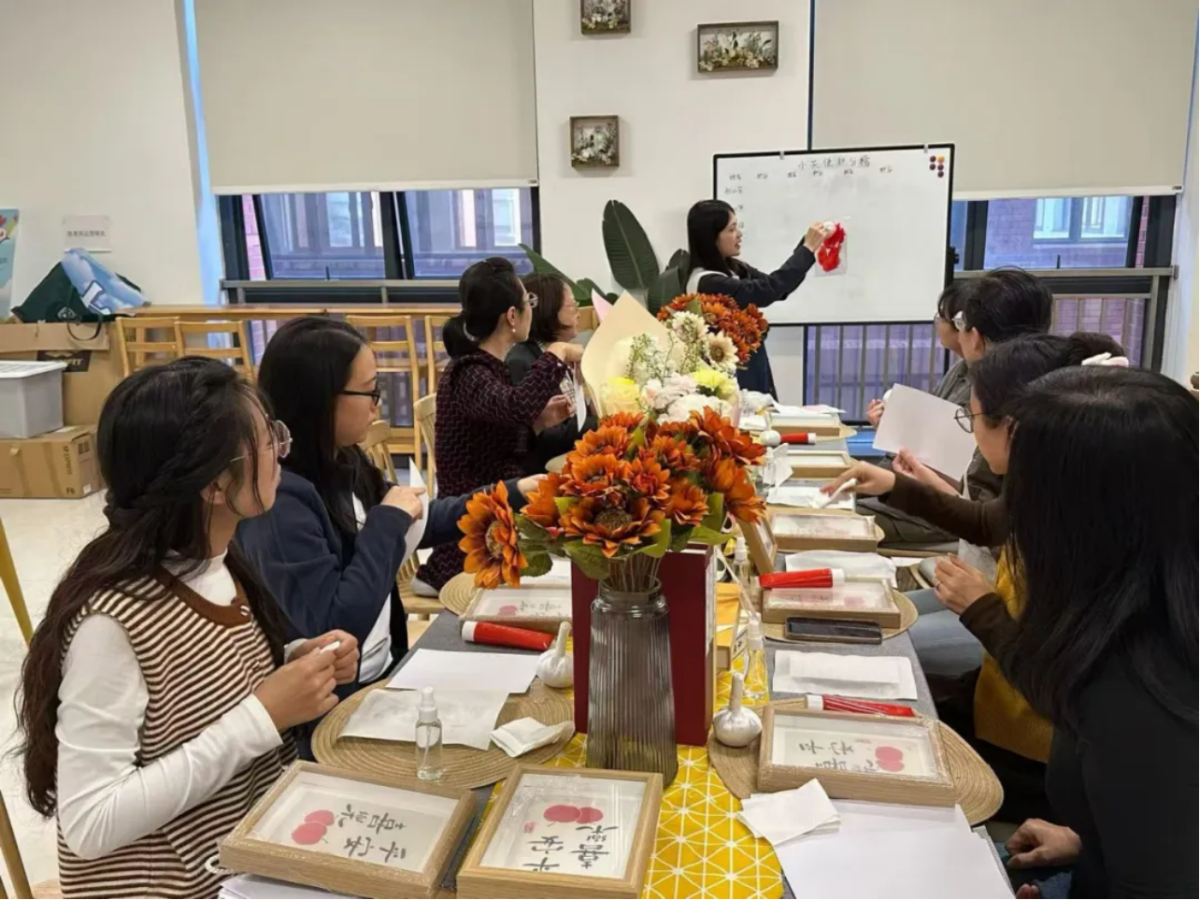 老师们亲手制作出一幅幅精美的拓印作品,从“知足常乐”到“欢喜”“美满”,从“吉祥如意”到“平安喜乐”,独具匠心的手作摆件逐渐呈现。现场欢声笑语不断,气氛温馨而热烈。参与体验的老师们纷纷为活动点赞。