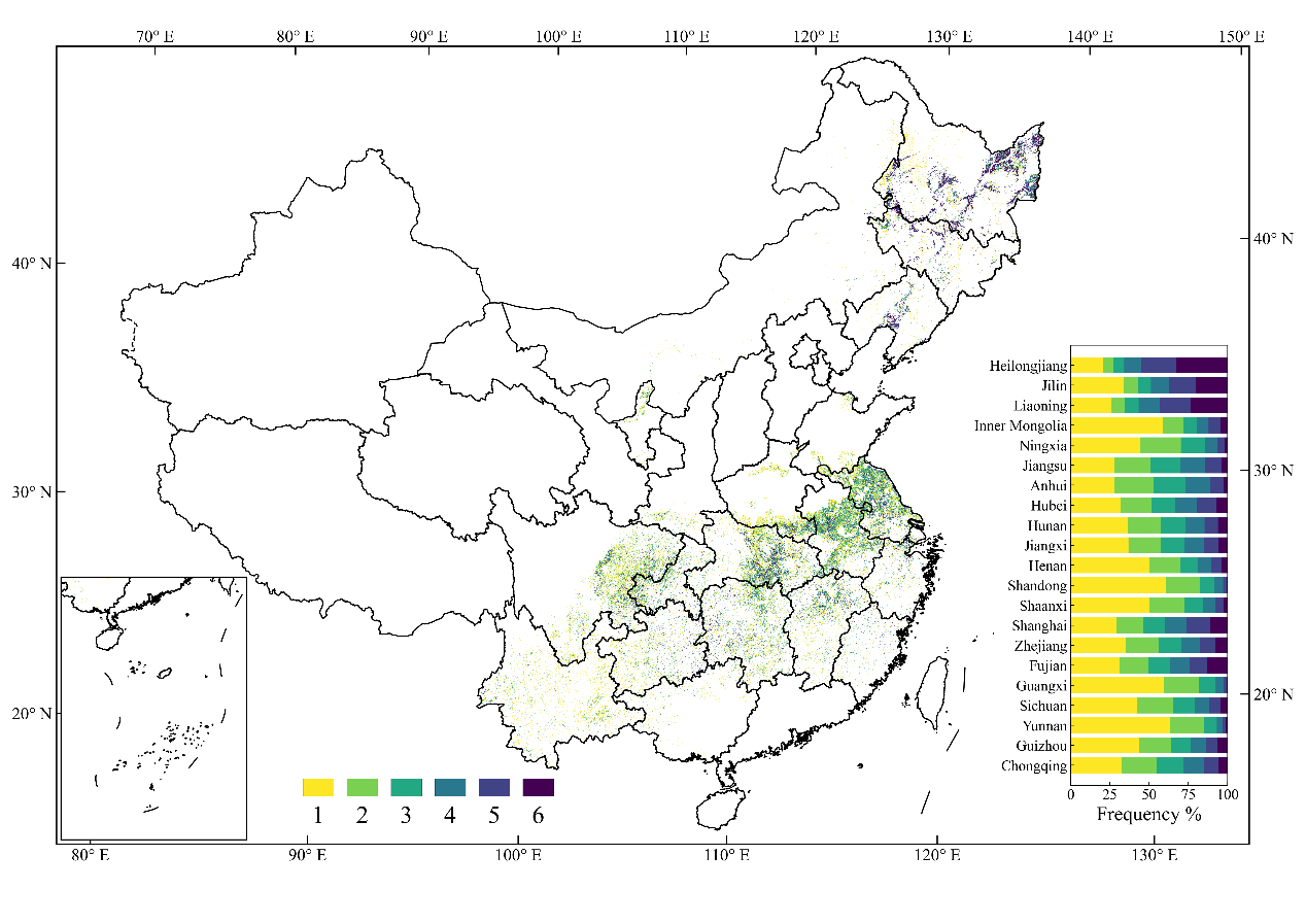 【论文信息】Shen, R., Pan, B., Peng, Q., Dong, J., Chen, X., Zhang, X., Ye, T., Huang, J., and Yuan, W.: High-resolution distribution maps of single-season rice in China from 2017 to 2022, Earth Syst. Sci. Data, 15, 3203–3222.